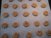 Blødgør smørret (jeg sætter det i mikroovnen på optøning i 10 sek.) og rør det med rørsukkeret. Tilsæt resten af ingredienserne og ælt til en fast dej. Rul dem til valnøddestørrelse og sæt på en bageplade med bagepapir. Tryk dem let flade med en gaffel (dyppet i koldt vand – så klistrer det ikke) og sæt dem på næsteøverste rille ved 200 grader i 8 minutter. Afkøl på en rist og server med en stor kop te (eller kaffe, hvis du er til det!).