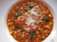 Til trods for skuffelsen over det danske grøntsagsudbud (når først man har stået ved en italiensk grønthandler, med 3 forskellige slags artiskokker at vælge imellem, og oprindelsesegn på ALLE grøntsager), lykkedes det mig at bakse en rigtig god minestra (minestrone) sammen i går. Jeg havde taget lidt (læs: MEGET) pasta med hjem fra Italien – så et par håndfulde mini-tortiglioni røg i, men almindelige suppehorn kan også gøre det.